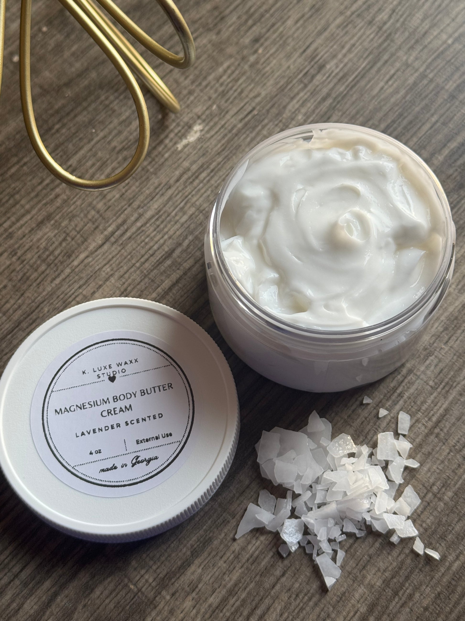 This is a listing for a 4oz jar of either unscented or lavender scented magnesium body butter cream.